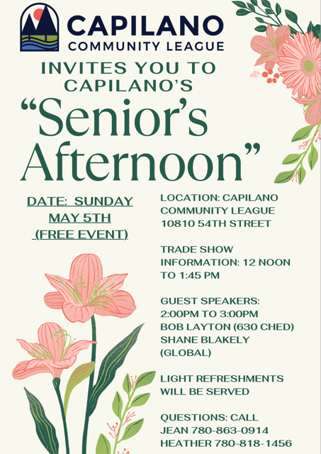 Capilano Community League is excited to bring a seniors’ information trade show and two wonderful guest speakers - Bob Layton and Shane Blakley – to our community hall (10810 - 54 Street)!
